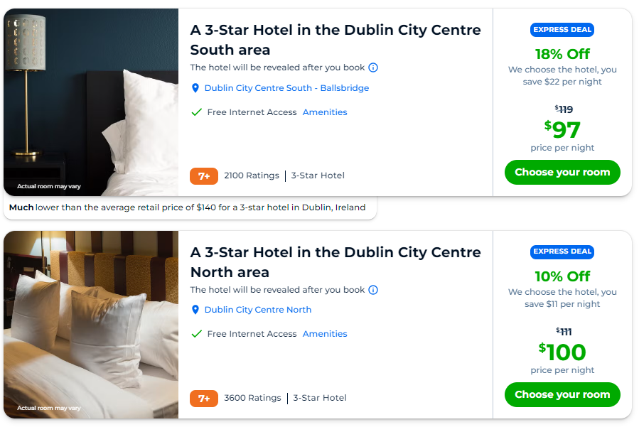If you want an even bigger discount Express Deals will only show you a general area the hotel is in and the amenities it offers before you book it, however, you will not know the name until you reserve the room. We find this is a great option when we have one night in a city and just want to be in a general area.
